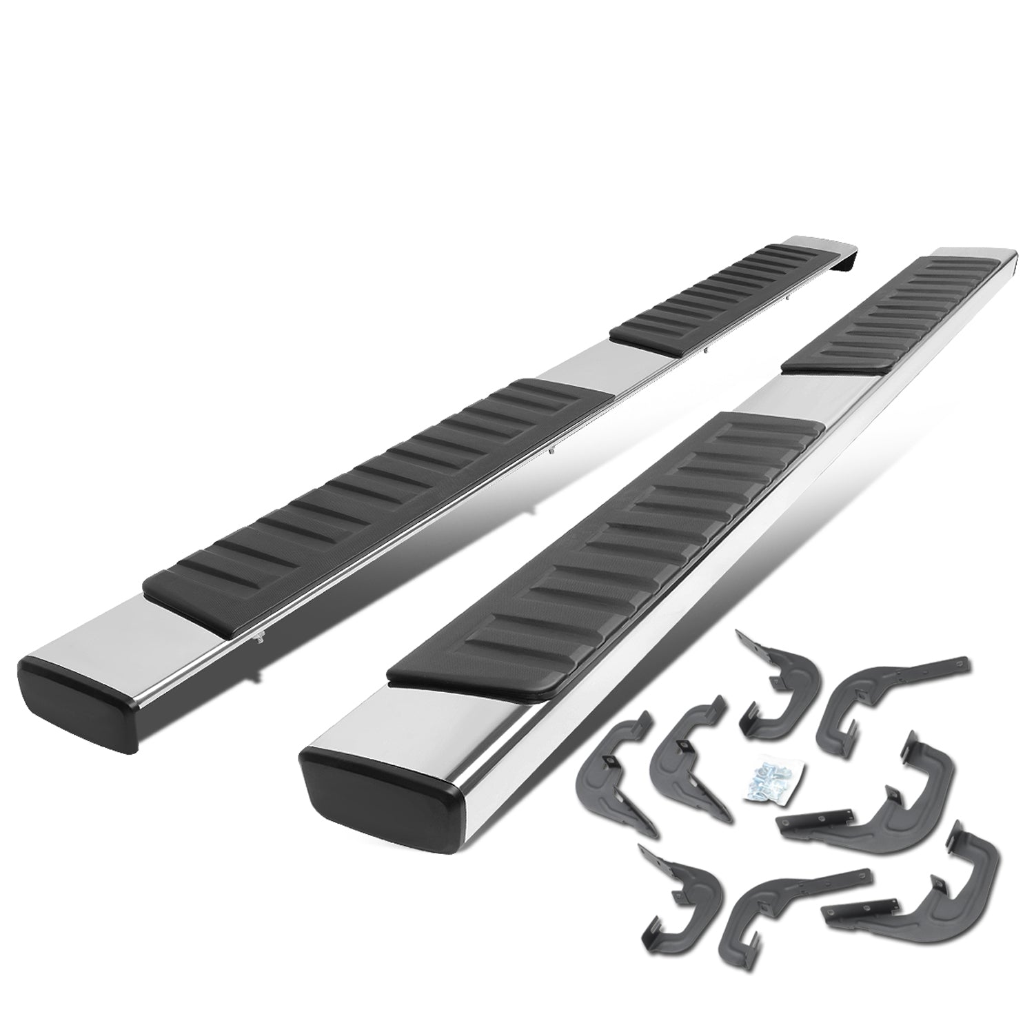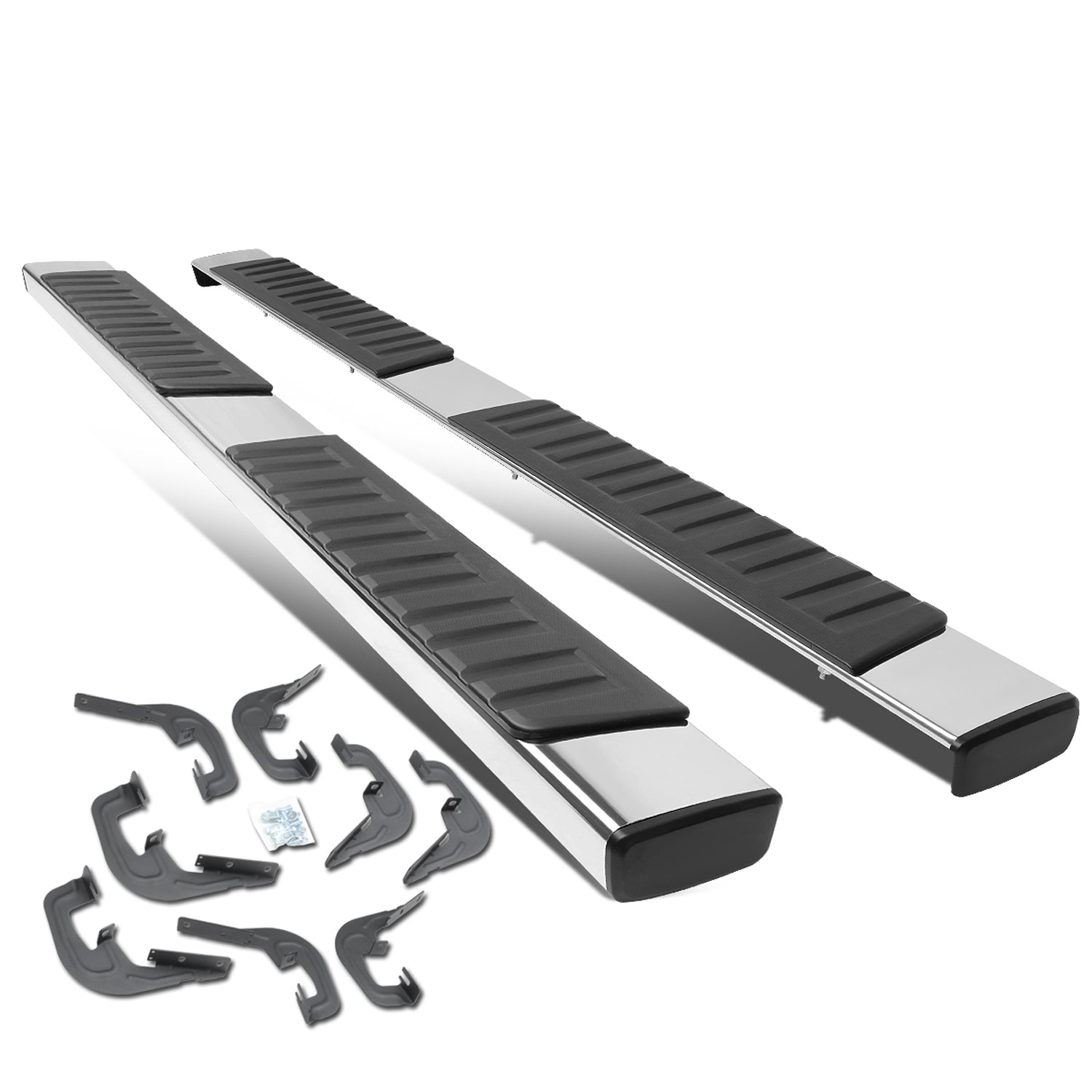 ESTRIBOS 6" - STRAIGHT - 07-18 CHEVY SILVERADO 1500, GMC SIERRA 1500 / 07-19 CHEVY SILVERADO 2500HD, 3500HD, GMC SIERRA 2500HD, 3500HD - DOES NOT FIT DIESEL MODELS EQUIPPED WITH DEF TANK - CREW CAB - SILVER