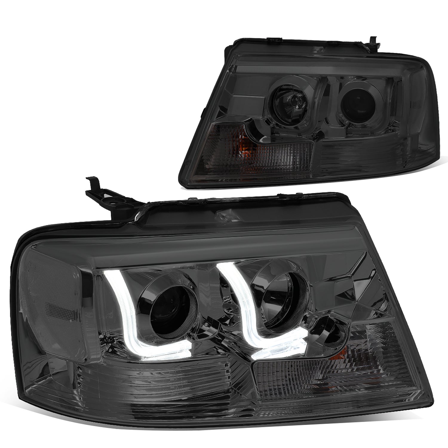 FAROS 04-08 FORD F-150 2/4-DOOR - 3D - LED - J-BAR HALO PROJECTOR - SMOKE HOUSING / CORNER CORNER - 9007 LOW BEAM / HIGH BEAM