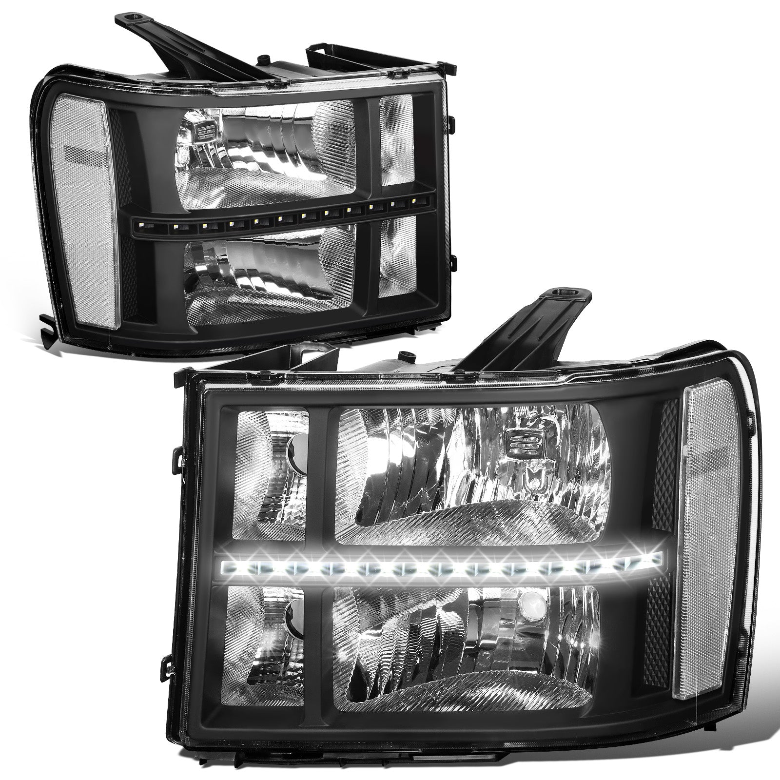 FAROS 07-13 GMC SIERRA 1500 / 07-14 GMC SIERRA 2500, 3500 - DOES NOT FIT 2007 CLASSIC STYLES - LED DRL STRIP - BLACK HOUSING / CLEAR CORNER