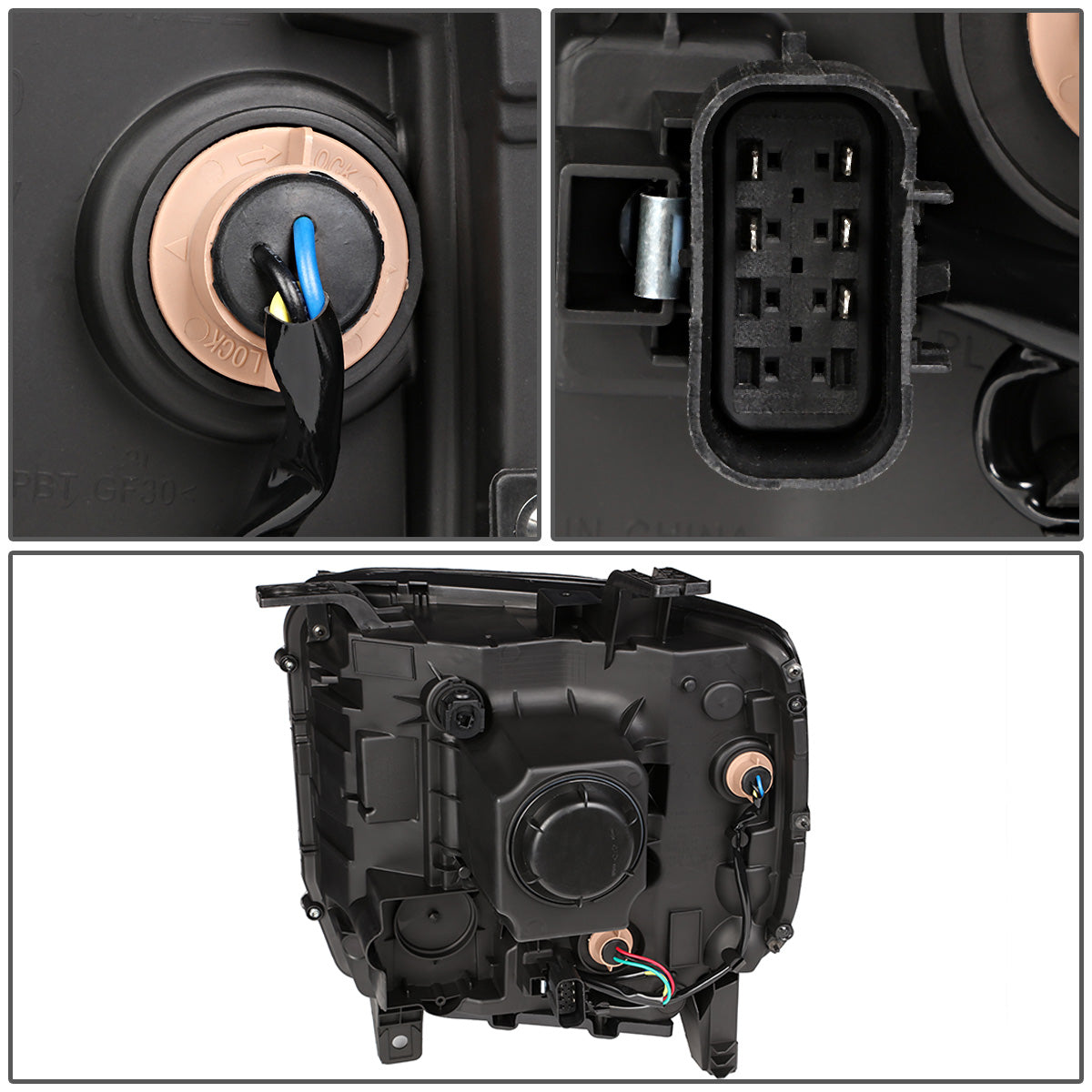 FAROS 14-15 GMC SIERRA 1500 / 15-17 GMC SIERRA 2500 , 3500 2/4-DOOR - FITS HALOGEN HEADLIGHTS MODELS ONLY - PROJECTOR - H7 LOW BEAM / HIGH BEAM - BLACK HOUSING / AMBER CORNER