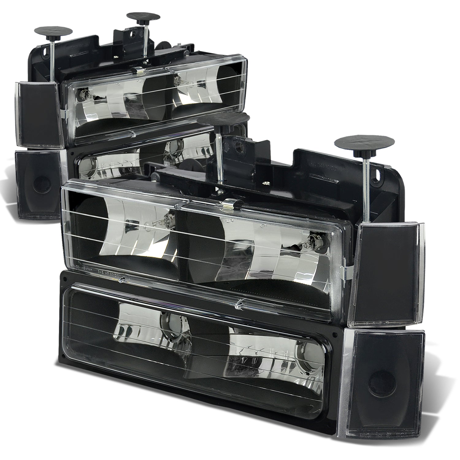 FAROS 88-93 CHEVY C10 2/4-DOOR - 8PC - BLACK HOUSING / CLEAR CORNER - 9006 LOW BEAM / 9005 HIGH BEAM
