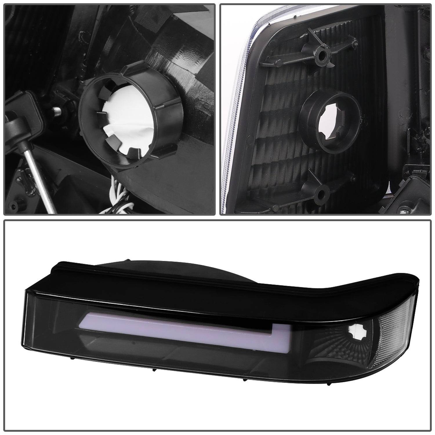 FAROS 92-96 FORD F-150, F-250, F-350 BRONCO - FITS MODELS WITH HALOGEN HEADLIGHTS ONLY - DUAL LED DRL - 4PC - BLACK HOUSING / CLEAR CORNER