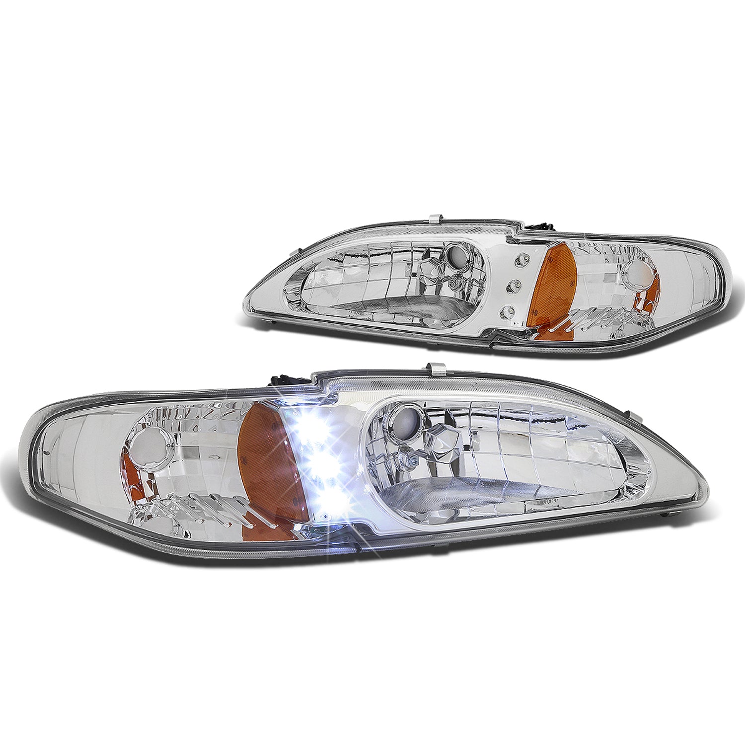 FAROS 94-98 FORD MUSTANG 2-DOOR - 1PC - LED - CHROME HOUSING / AMBER CORNER - 9007 LOW BEAM / HIGH BEAM