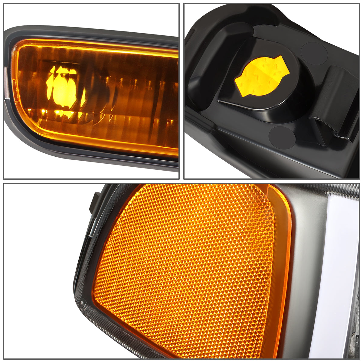 FAROS 99-06 GMC SIERRA 1500, GMC YUKON / 00-06 YUKON XL 1500, 2500 / 01-06 SIERRA 2500HD, 3500 / 2007 SIERRA 1500 CLASSIC, 2500HD CLASSIC, 3500 CLASSIC - EXCLUDES C3, DENALI MODELS - LED DRL - SWITCHBACK TURN SIGNAL - 4PC - BLACK HOUSING / AMBER CORNER