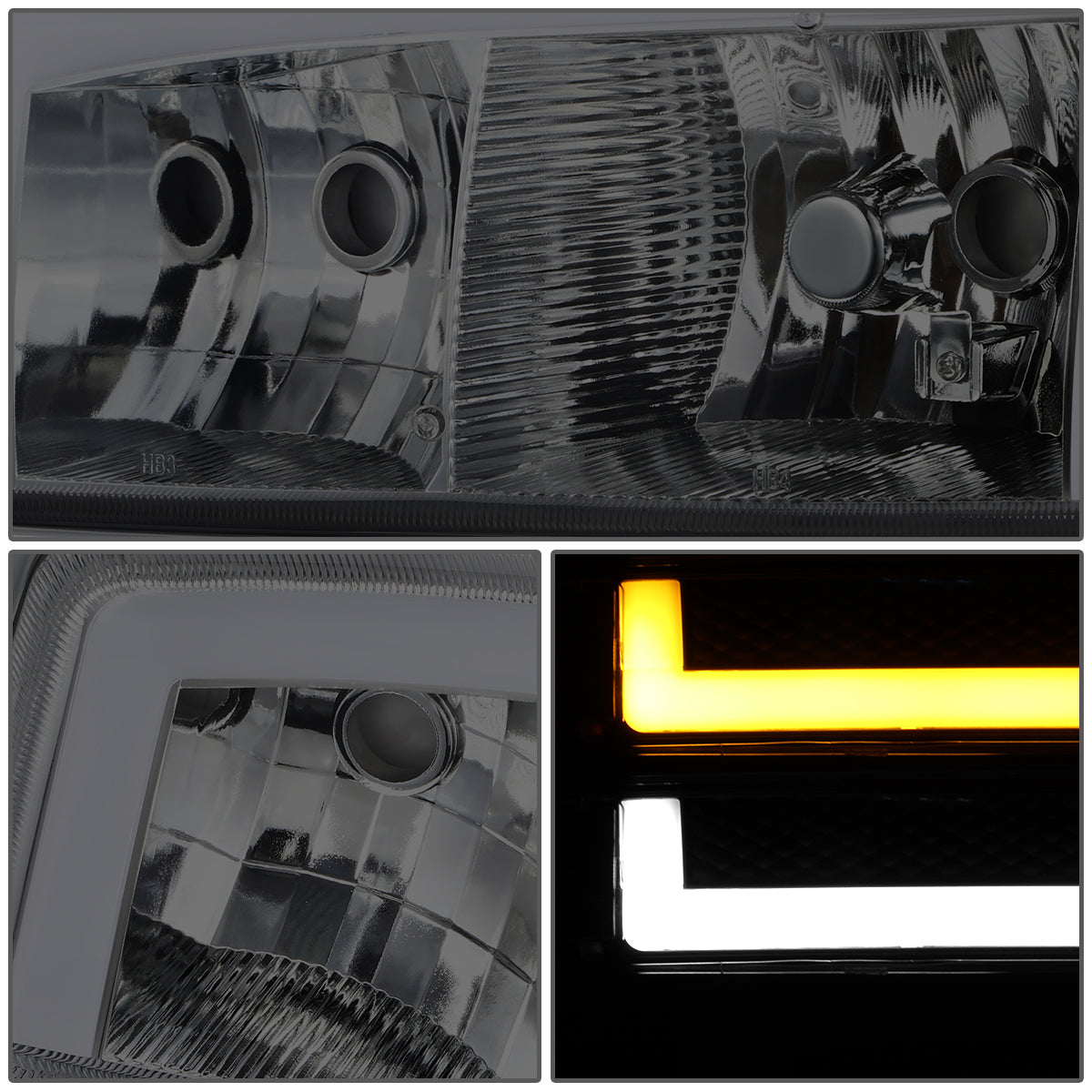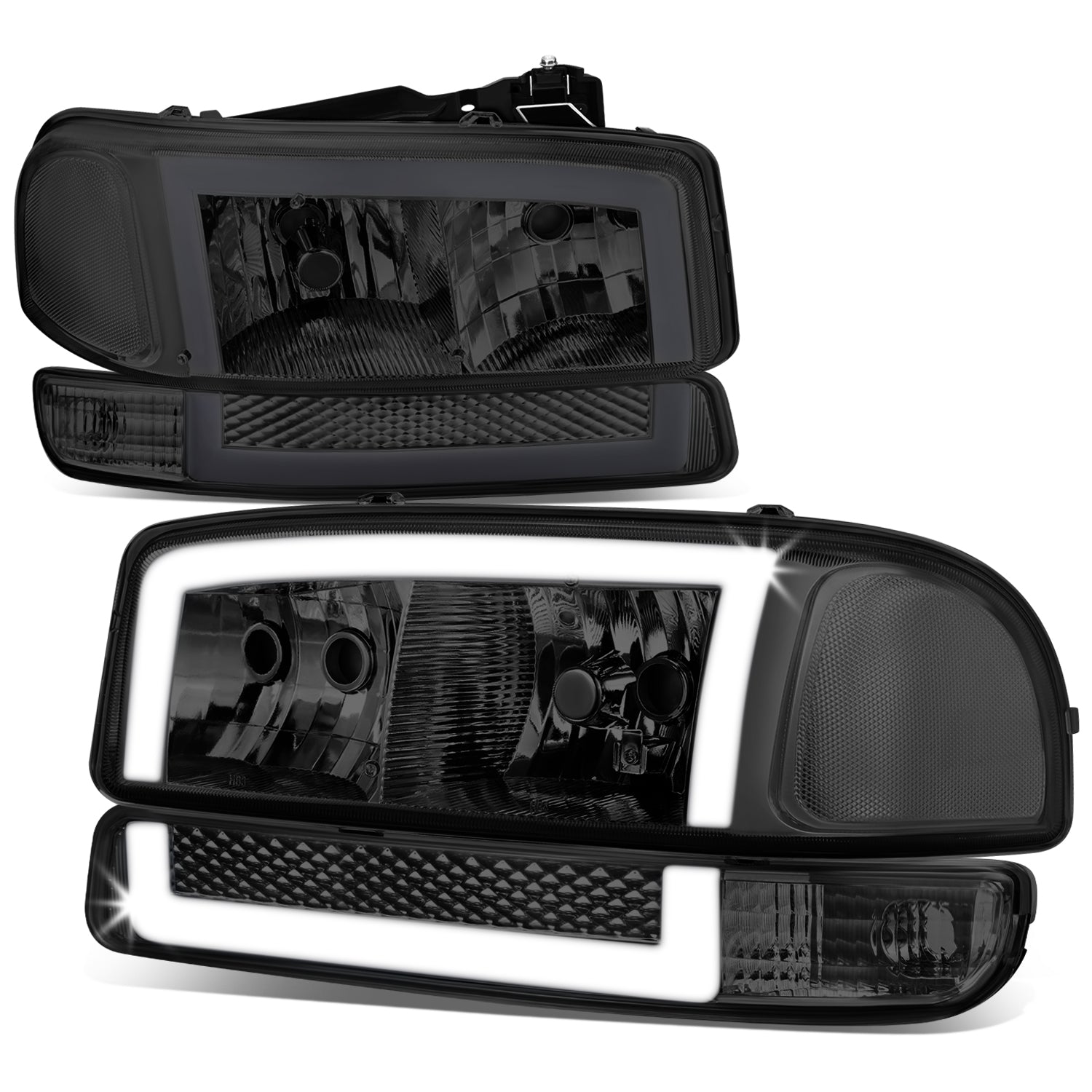 FAROS 99-06 GMC SIERRA 1500, GMC YUKON / 00-06 YUKON XL 1500, 2500 / 01-06 SIERRA 2500HD, 3500 / 2007 SIERRA 1500 CLASSIC, 2500HD CLASSIC, 3500 CLASSIC - EXCLUDES C3, DENALI MODELS - LED DRL - SWITCHBACK TURN SIGNAL - 4PC - SMOKE HOUSING / CLEAR CORNER