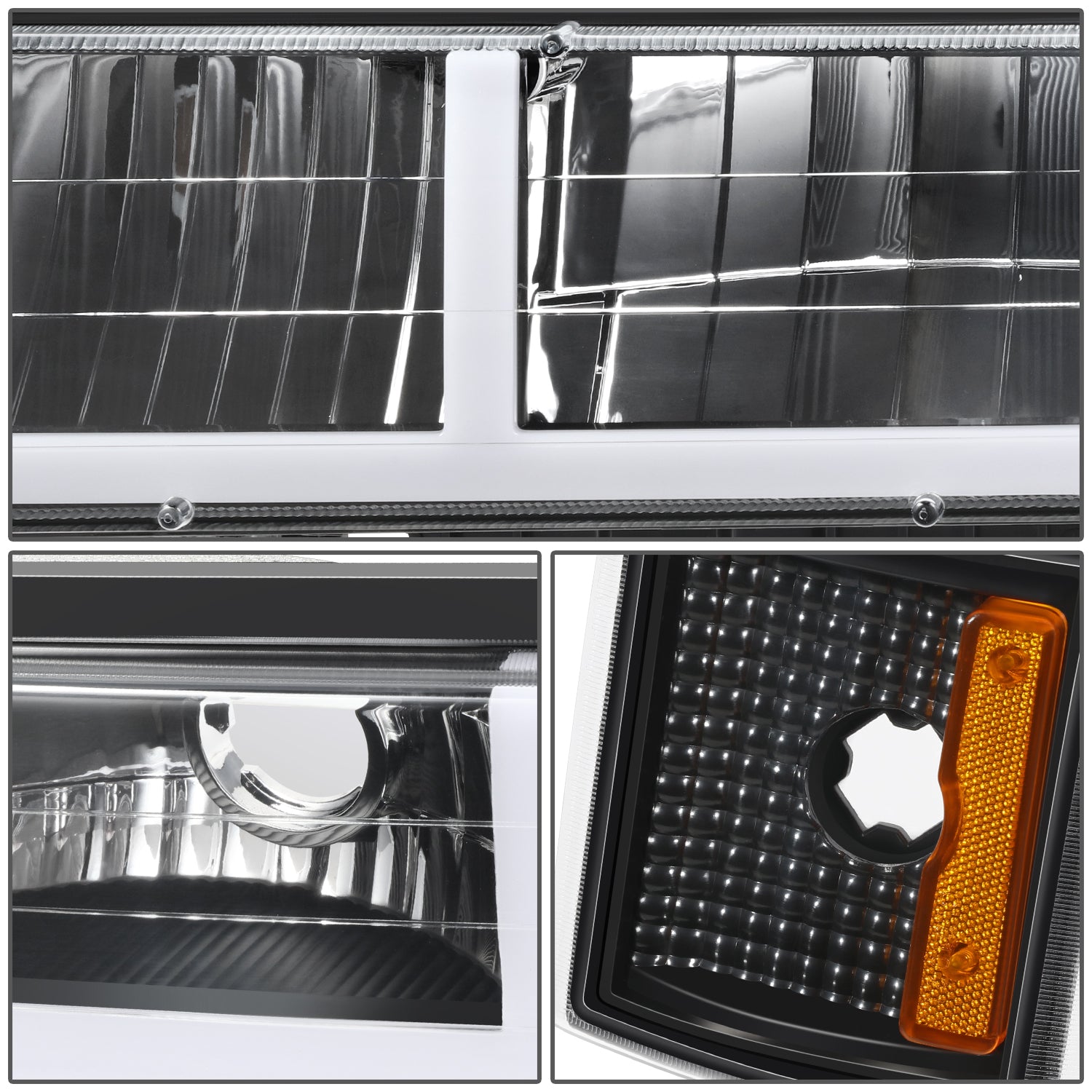 FAROS CLEAR LENS,AMBER REFLECTOR,BLACK HOUSING - 8PCS - LED BAR - 94-99 GMC C1500 K1500 YUKON / 94-99 GMC C1500 SUBURBAN C2500 SUBURBAN K1500 SUBURBAN K2500 SUBURBAN / 94-00 GMC C2500 C3500 K2500 K3500 - FITS MODELS WITH COMPOSITE HEADLIGHTS ONLY