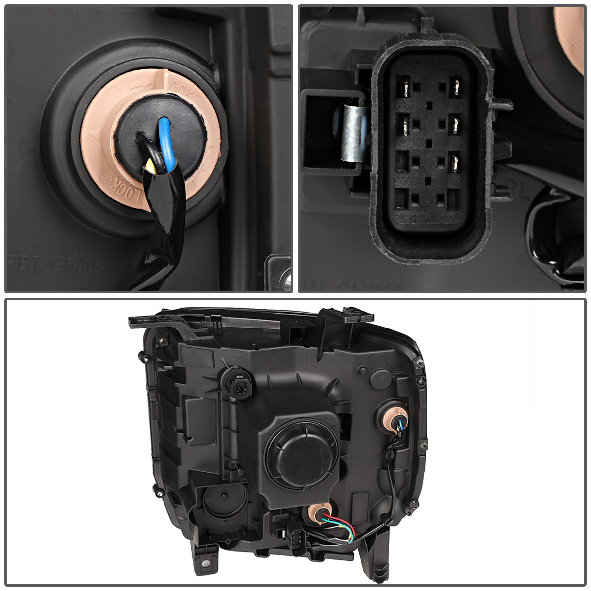 FAROS OE STYLE - 14-18 GMC SIERRA 1500 / 15-19 GMC SIERRA 2500HD, 3500HD - ONLY FITS HALOGEN HEADLIGHT MODELS WITHOUT LED DRL - H7 HIGH & LOW - BLACK HOUSING - RIGHT