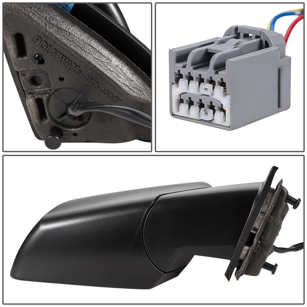 RETROVISOR MIRROR - OEM - 13-16 GMC ACADIA - POWERED - W/ SQUARED BLIND SPOT GLASS - PAINTED - BLACK - RIGHT